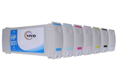 Cyan (compatibil HP 831 cyan); Magenta (compatibil HP 831 Magenta); Yellow (compatibil HP 831 Yellow); Black (compatibil HP 831 Black); Light Magenta (compatibil HP 831 Light magenta), Light Cyan (compatibil HP 831 Light Cyan), Optimizer (compatibil HP 831 Optimizer). Cartuse de 775 ml cu chip incorporat, plug & play, fara a fi nevoie de operatiuni de golire a circuitului in prealabil!